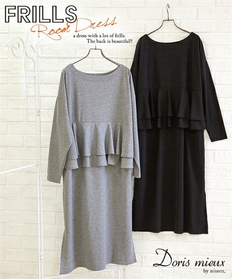 パジャマ ルームウェア Ll 3l 大きいサイズ ストレッチ ミニ裏毛 ウエストマーク ルームワンピース ニッセン Nissen 部屋着 ルームウェア パジャマ シンプル